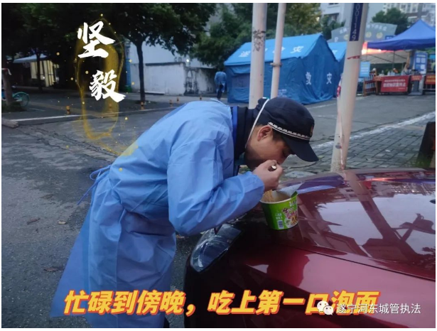 从城市管理工作者到疫情防控战士,改变的是工作场地,不变的是责任担当。无论是一线还是幕后,综合行政执法局还有很多像梁飞翔、郑伟、曾帆这样的城管队员,默默无闻,在这场没有硝烟的战斗中,竭尽全力,冲锋在前,以昂扬的斗志与饱满的热情,全力做好服务工作,让防疫工作有速度,有力度,更有温度。