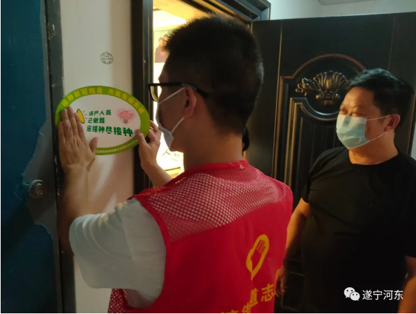 “我们对全员接种的家庭张贴了‘该户人员已做到应接种尽接种’绿色标识。”正在为居民张贴绿色标识的防疫工作者说道,张贴绿色标识,可以让群众充分发挥疫苗接种示范带动作用,进一步加强宣传、引导、动员,营造积极踊跃接种的良好氛围,激励辖区群众尽快完成新冠疫苗接种,早日筑牢全民免疫屏障。