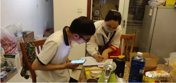 “你好,我是社区工作人员,根据疫情防控需要,现在要对你家人员接种新冠疫苗情况进行了解,请配合。”这是河东新区防疫工作者敲开每一户居民家门后说的第一句话,这句话,他们记不清已经重复了多少次,也忘记了敲得红肿的手指有多疼,手里的工作笔记本记录得有多厚,他们只知道,要争分夺秒把疫苗接种宣传排查工作落实到每一户每一人。