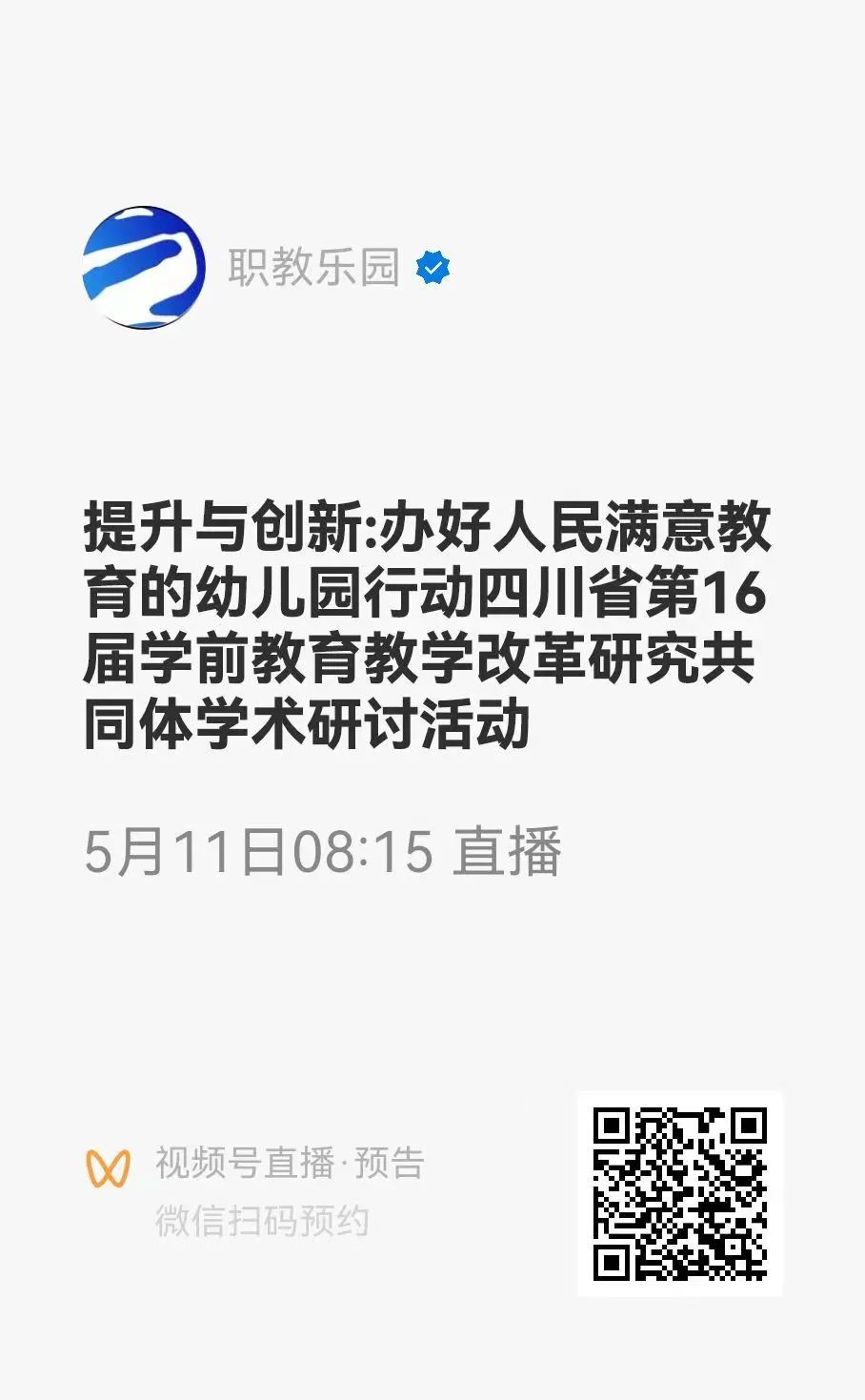 为落实党和国家对学前教育的要求,办好人民满意的学前教育,推进《“十四五”学前教育发展提升行动计划》,探讨如何在幼儿保教中落实“为党育人,为国育才”的要求,提升幼有善育的实践能力,由四川省教育科学研究院、遂宁市教育和体育局、遂宁市河东新区管理委员会主办,遂宁市河东新区社会事业与群众工作局、《教育科学论坛》编辑部、遂宁市河东实验幼儿园承办,中共遂宁市委党校、遂宁市职业技术学校、遂宁市尹艳名园长工作室协办的“四川省第16届学前教育教学改革研究共同体学术研讨活动”,将于2023年5月10—12日,在中共遂宁市委党校举行。届时,欢迎大家扫码观看直播。