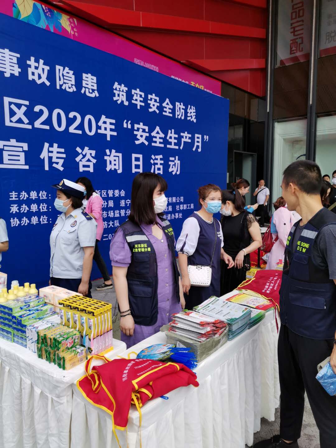 为进一步加强安全生产宣传教育工作,提高人民群众安全生产意识。6月18日上午,河东新区管委会在遂宁市万达广场组织开展了以"消除事故隐患,筑牢安全防线"为主题的"安全生产月"集中宣传咨询日活动。河东新区应急分局、建交局、社事群工局、市场监管分局、经合局、发改局、自规分局、消防大队、交警三中队等部门参加了本次活动。