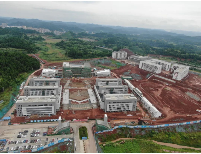 截至7月底,四川能源职业学院校大门主体、砌体全部完成;行政楼屋面完成,外墙饰面层完成70%、幕墙完成80%,装饰装修完成50%;图书馆砌体、内外墙抹灰完成,屋面完成、幕墙完成70%;1、2号学生公寓室内装饰完成37%、外墙饰面层95%;教师公寓室内装饰完成40%,外墙饰面层完成85%;技术与交流中心砌体完成,幕墙完成50%,装饰装修完成20%。四川师范大学遂宁校区(四川乡村振兴学院)教学楼主体、砌体全部完成,室内抹灰完成50%;学生宿舍楼和教师公寓主体、砌体完成,装饰装修完成55%;食堂主体完成,砌体完成80%;体育馆基础施工完成50%。遂宁市兴学商务中心项目学术报告厅、教学楼、行政办公楼已全面完工;学员公寓及餐厅图书馆外墙装饰完成,室内装修完成95%;文体中心室内装修完成,正在修建室外运动场;学员宿舍楼室内装修完成,正在进行收尾工作。
