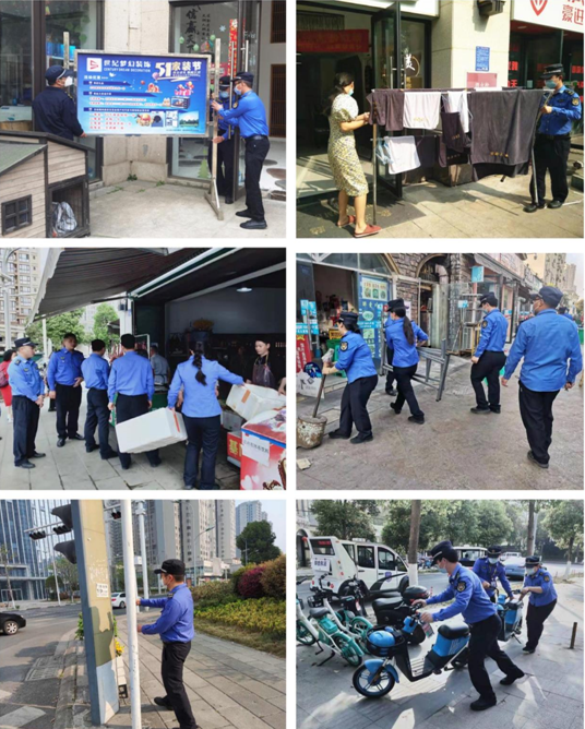 整治过程中,执法人员秉持“721”工作法,主动服务、规范管理、文明执法,注重城市管理法律法规的宣传。一是对存在占道经营、门前乱堆乱放杂物的商户进行耐心劝导,与商户业主做好沟通和协调,敦促严格落实“门前五包”责任制,并提出整改意见,积极引导他们以城市主人翁姿态主动参与城市管理,自觉规范经营行为;同时,引导流动商贩到指定区域的便民市场内进行规范经营,对于屡教不改擅长“打游击”的无照摊贩,依法暂扣经营物品,坚决予以取缔。二是对校园周边存在的少数高音促销、叫卖兜售等现象进行劝导制止,加强食品流动摊贩综合治理,努力为广大学生营造整洁、安静的学习和休息环境。三是清理铲除街道、墙面等公共设施上乱贴乱画、乱涂乱写的违规广告,对占用人行通道和盲道乱停乱放的非机动车及时进行规范清理,确保市容秩序整洁有序。