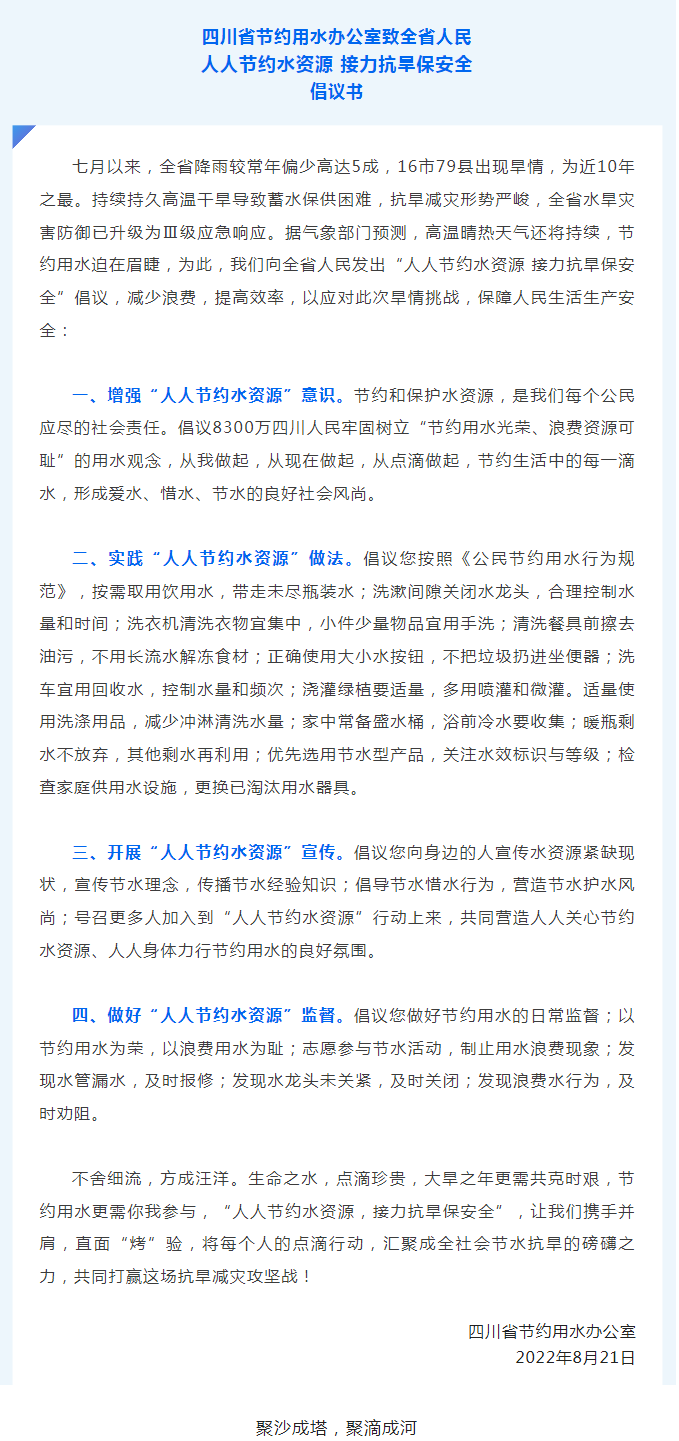 突发事件能源供应保障一级应急响应意味着什么?节水,节水,节水!