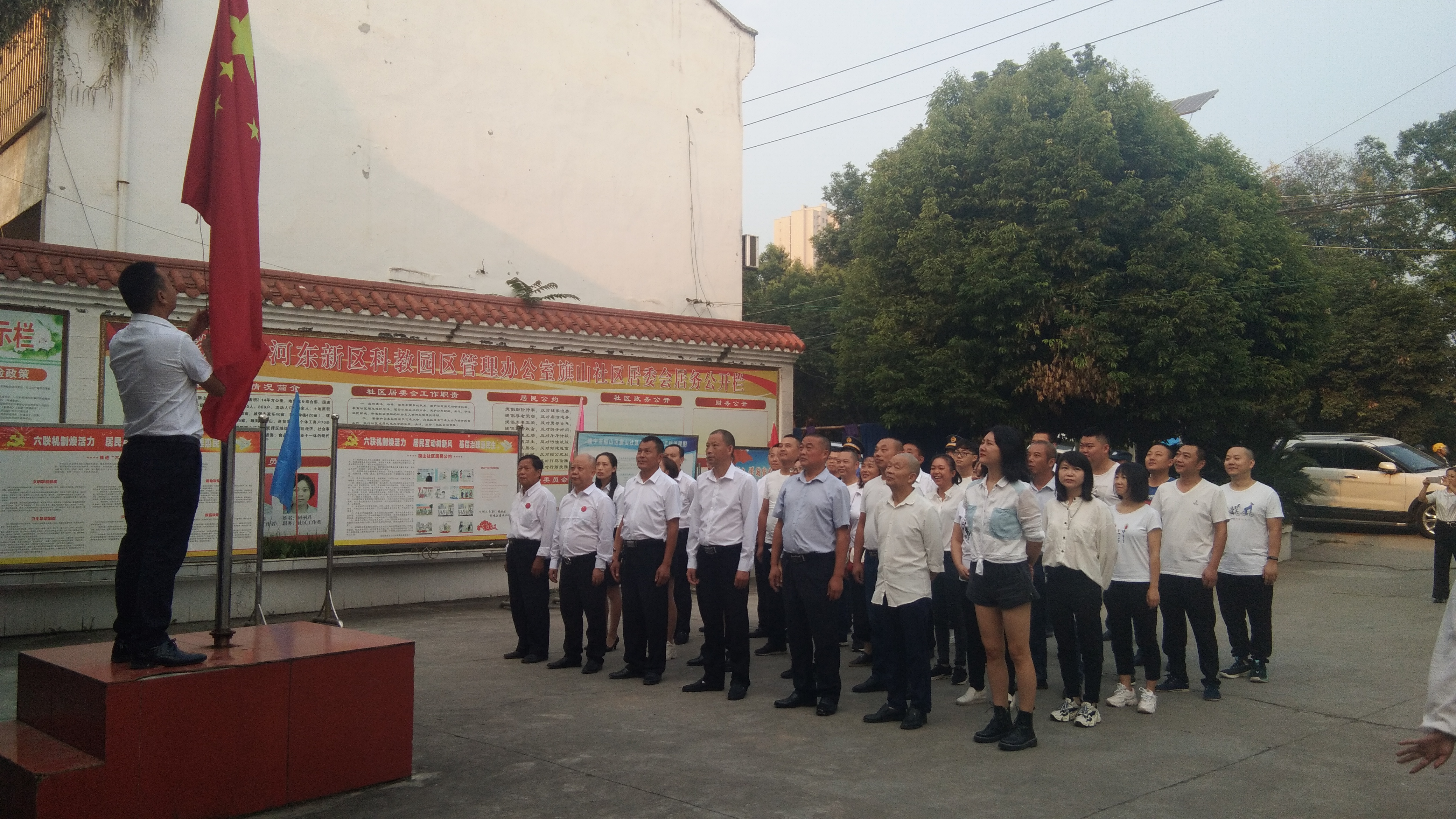 为庆祝新中国成立70周年,10月1日早上,科教园区领导班子成员与村、社区干部在市政府广场参加了升国旗仪式,同时一部分干部职工在旗山社区也参加了升旗仪式。伴随着嘹亮的国歌声,他们满怀敬意向国旗行注目礼,齐声高唱国歌,以庄严的方式表达了团结一致、始终铭记信念、不忘初心、矢志不渝践行庄严承诺的决心,并献上对祖国最深、最美好的祝福。
