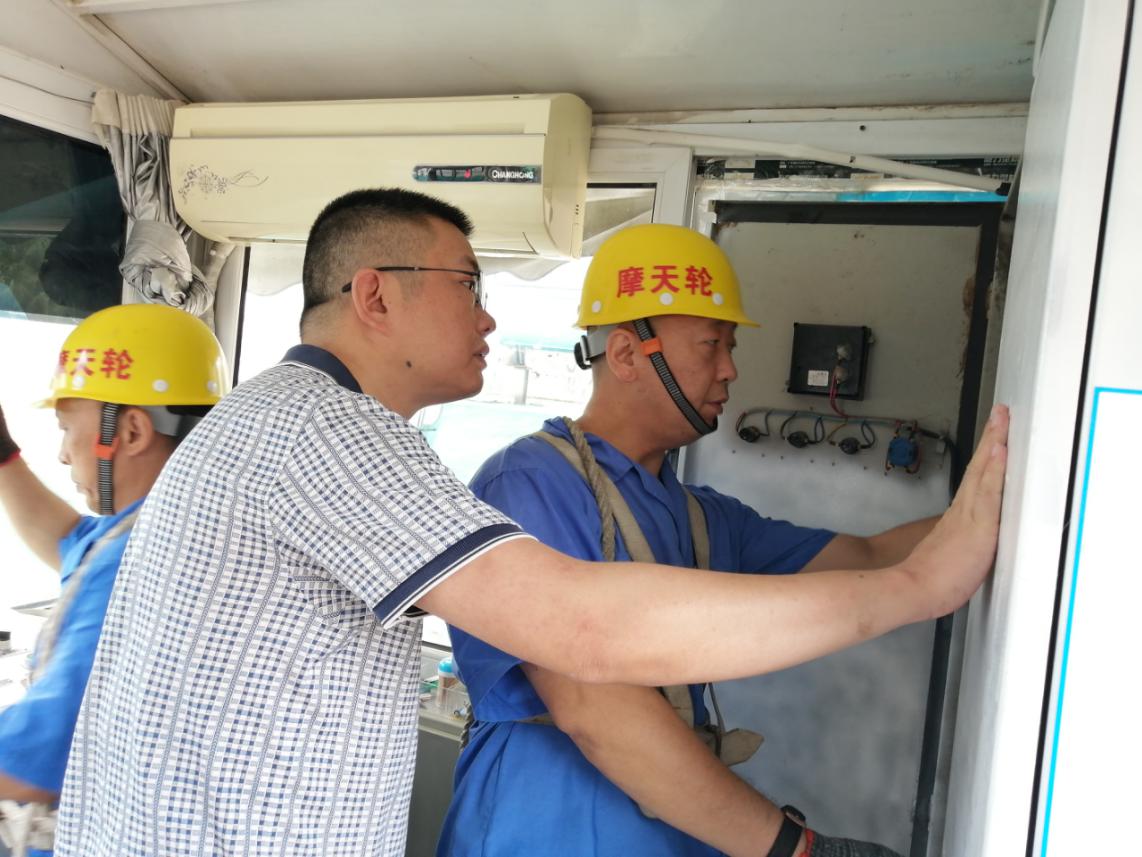 为确保大型游乐设施安全运行,提高运营使用管理单位处置应急事件的能力,6月19日,河东新区市场监管分局在摩天轮举行了大型游乐设施高空困人应急救援演练,分局局长王应到场指导演练。