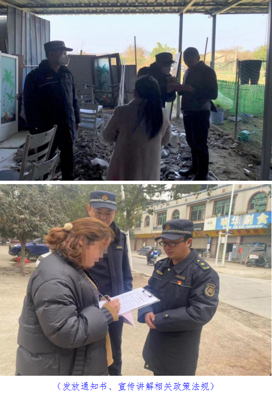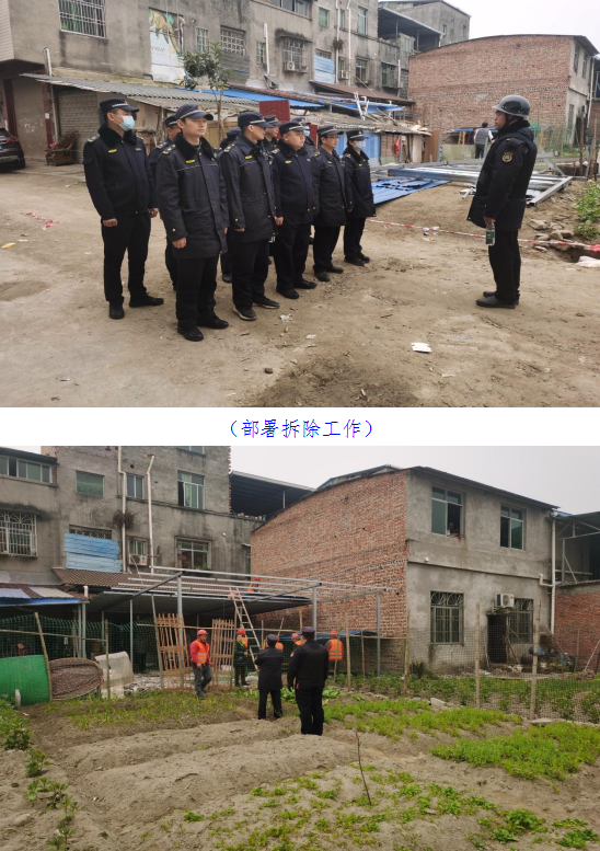 拆除现场,执法人员拉好警戒线,组织第三方在保障群众人身安全的情况下有力有序实施拆除工作,同时积极向周边群众宣传普及私搭乱建行为的危害和相关法律规定,最终拆违任务顺利完成。