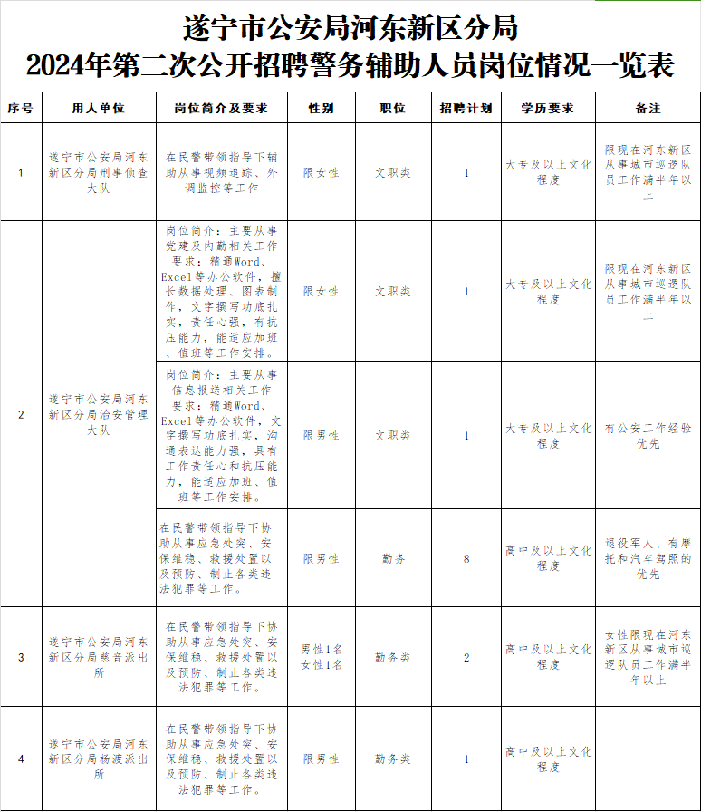 附件:遂宁市公安局河东新区分局2024年第二次公开招聘警务辅助人员岗位情况一览表