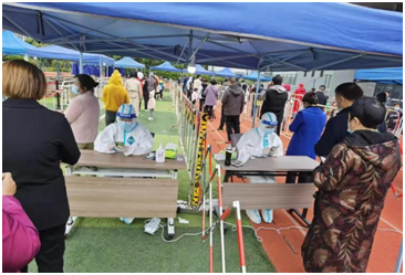 三是到社区开展志愿服务,走上街头,做好核酸检测、防疫宣传。