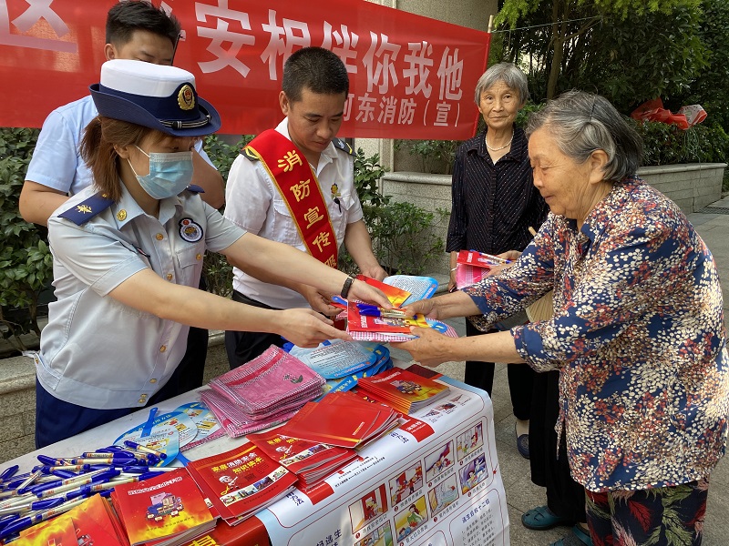 "叔叔阿姨,过来了解一下,我们在开展消防安全宣传进社区、进家庭活动,还有礼品可以领。"6月24日上午,河东消防救援大队宣传服务队深入保利江语城小区,联合社区消防宣传大使为居民送去消防安全知识,同时就家庭防火常识对小区业主进行宣传教育,助力新区安全宣传"五进"活动工作再上新台阶。