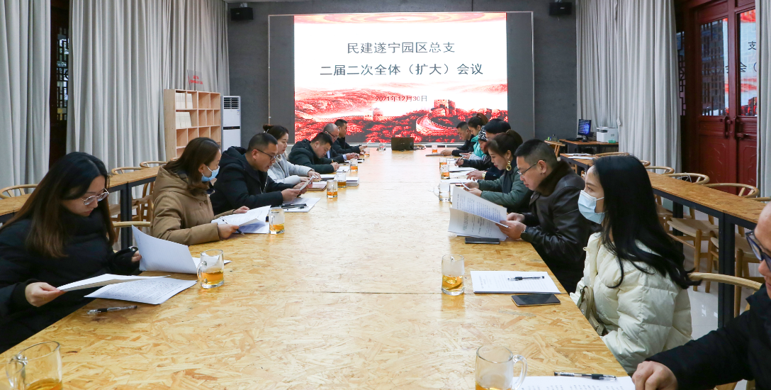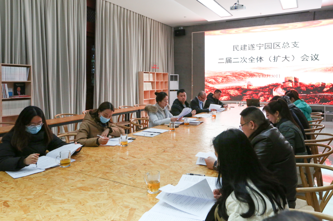 在灵仙阁活动阵地,召开了园区总支二届二次全体(扩大)会议,传达学习了中共十九届六中全会、民建市委八届四次全体会议精神和《民建遂宁市委基层组织运行规则》《民建遂宁市委优化调整专门委员会工作方案》文件,讨论通过了监督委员、组织考核委员、参照议政委员、经济服务委员、理论宣传委员、文化建设委员。会议从参政议政、社会服务、自身建设、创新争优4个方面,对2021年工作进行了总结回顾,系统梳理分析明确了2022年重点工作。