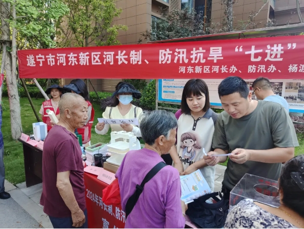 社区工作人员到小区开展河长制、防汛抗旱“七进”宣传活动