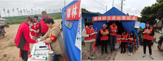 水寨门社区、姜家巷社区党员志愿者在森林防火点位进行宣传劝导文明祭祀