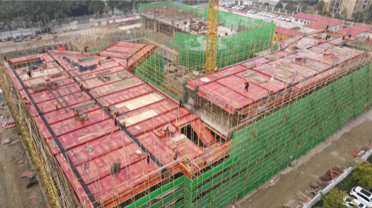 连日来,市河东新区朝阳路小学施工现场一片忙碌。记者在现场看到,教学楼部分楼栋主体正在进行第四层修建,同时进行的还有地下室防水以及筏板基础施工。