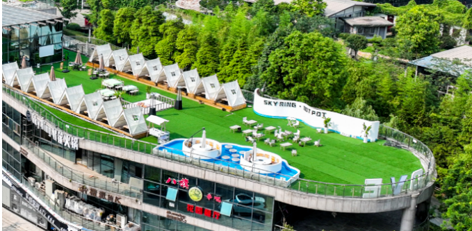 向屋顶这一闲置低效资源要效益,新区“第五立面”改造通过业主自建为主、多元联建为辅、国企领建为补等三种模式相结合,美化城市空间,打造消费空间、激活产业业态。