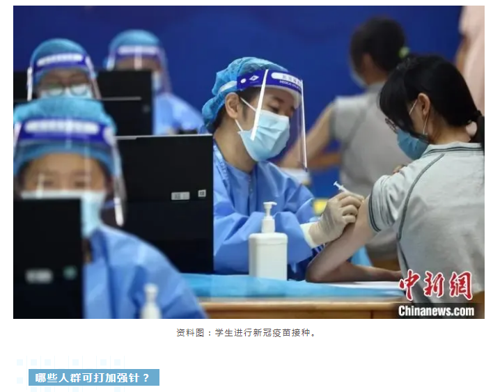 今年9月,国务院联防联控机制召开的新闻发布会上,中国疾控中心免疫规划首席专家王华庆提到,建议对三类重点人群开展加强针接种。