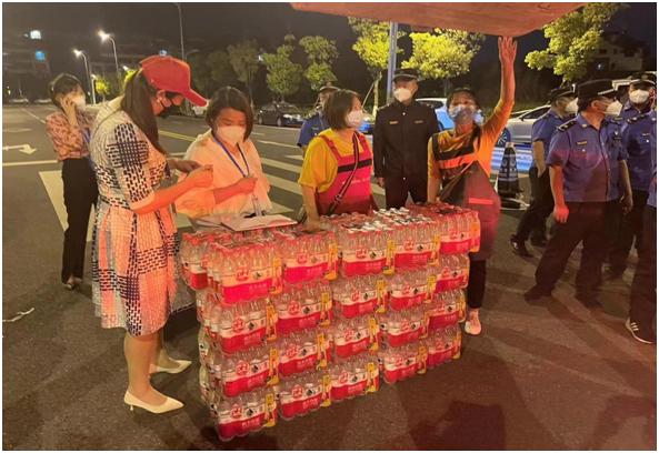 面对突如其来的疫情,始终忙于疫情防控第一线的城管队员们由于工作要求高、任务重,常常因忙碌而顾不上吃口热饭。了解到一线工作人员的辛苦,许多爱心人士、企业纷纷向综合行政执法局捐赠爱心物资,包含口罩、消毒用品、午餐、面包、矿泉水等各类物品。