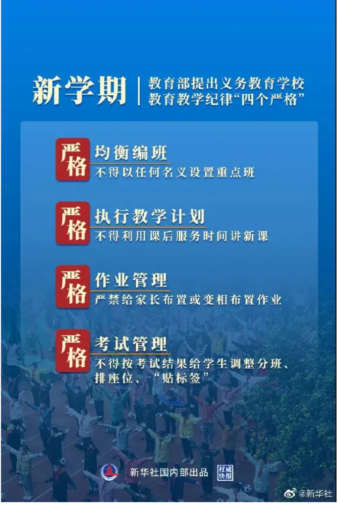 会上通报,新学期开学后,义务教育学校要严格执行均衡编班的法律规定,不得以任何名义设置重点班,切实做到均衡配置师资。严格执行教学计划,不得随意增减课时、改变难度、调整进度,不得利用课后服务时间讲新课。