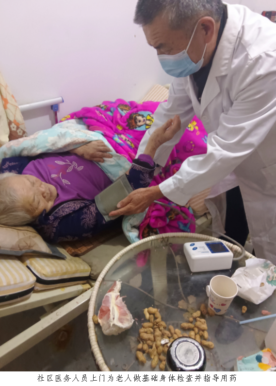 一大清早,水寨门社区工作人员和卫生服务站的医务工作者就提着医药箱和医药包,来到了水寨印象小区陈某于老人家中。“这几天感觉怎么样啊,吃得下东西吗?”医务人员一边为老人家测量血压,一边询问她的身体状况。