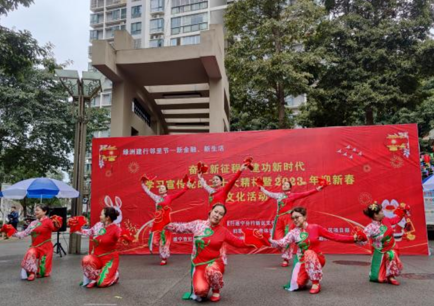 为深入学习贯彻党的二十大精神,丰富社区业余文化生活,按照“党建引领社区文化建设”思路,在2023年春节来临之际,1月16日绿洲社区联合建设银行遂宁分行新区支行共同组织“奋进新征程·建功新时代”学习宣传党的二十大精神暨2023年迎新春文化活动。