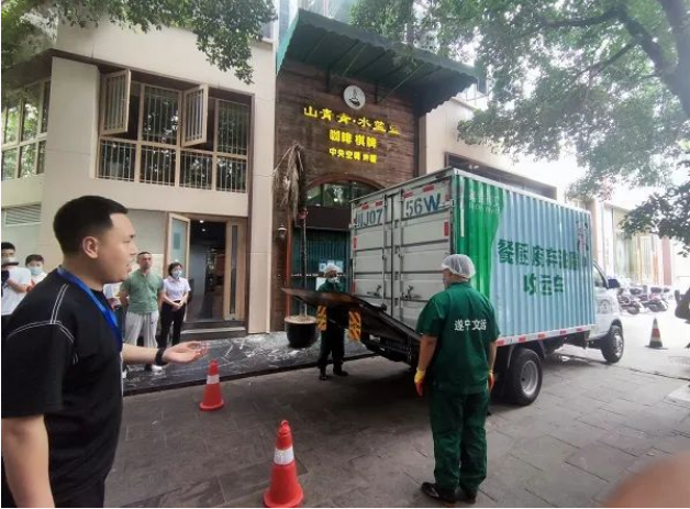 这些废弃油脂是如何分离产生的呢?不少观摩人员发出了这样的疑问。为解答观摩人员心中的疑惑,工作人员马上带领观摩团来到火锅店的后厨。“刚才我们看到的废弃油脂,就是从这台机器分离出来的。”一位工作人员指着一台油水分离器说,客人未食用完的锅底和废弃食材,首先会倒进油水分离器内进行处理。处理完之后,再分类打包,然后进行运输。