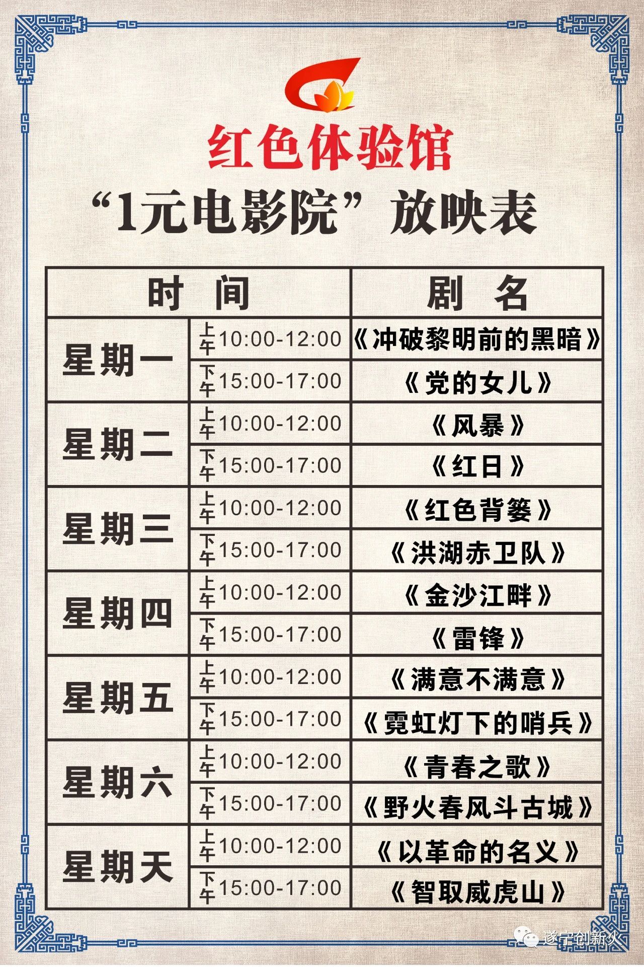 市河东新区红色体验馆“1元影院”放映表(4月10日-4月16日)