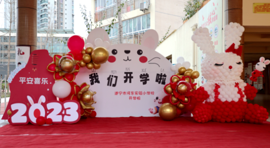 春之伊始,新之希望。为让孩子们感受开学的喜悦和成长的快乐,河东实验小学准备了写福字、抽福袋等开学活动,满满的仪式感中,寄托着老师们的温暖祝福。整齐的桌椅、崭新的课本、精美的欢迎板报,班班有特色,班班皆精彩,方寸教室尽展新颜。新起点,新梦想,2023年,让我们大展宏“兔”,“兔”飞猛进,共同谱写河小崭新的教育篇章。