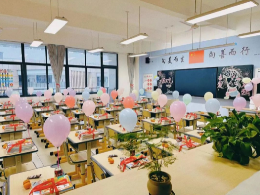 新学期,洋渡实验学校为了迎接孩子们,老师及热心的家长、同学提前布置好了教室,崭新的书本与红色丝带,这是一份使人博学的礼物;缤纷的糖果与气球,这是一份使人甜蜜的礼物。当然,还少不了每个班精彩的黑板报,黑板报上的一笔一画,都是洋渡老师对全体学子的殷切期望。
