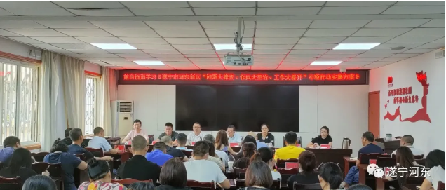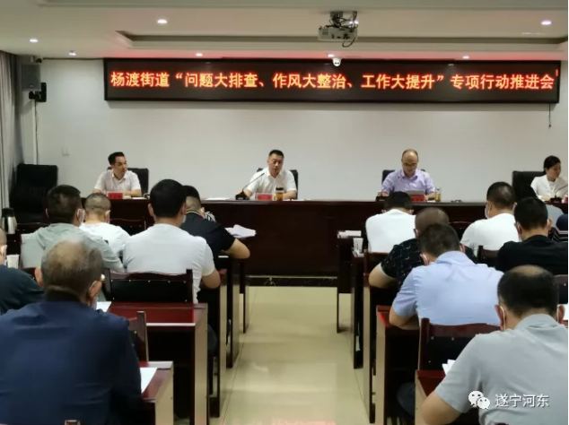 9月18日,市河东新区杨渡街道召开“问题大排查、作风大整治、工作大提升”专项行动推进会,就街道如何贯彻落实市区两级关于专项行动要求做了详细的安排部署。街道党政领导班子成员、机关全体干部、各社区书记(主任)共70余人参会。