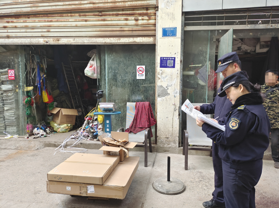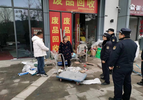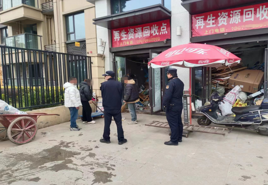 二、分类整治,规范管理。对部分存在回收物品随意堆放的经营商家,要求负责人即查即改,严格落实“门前五包”责任制,在营业期间不得将回收物品、秤、三轮车等堆放在人行道及盲道上,严禁堵塞交通秩序、影响环境卫生;对长期占用人行通道、跨店占道经营的商家现场提出整改要求和标准,责令限期整改到位,并签发违章行为登记;对多次违反规定,限期未整改或整改不到位的商家依法严格查处。
