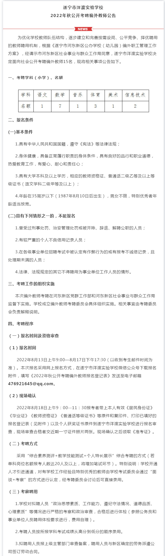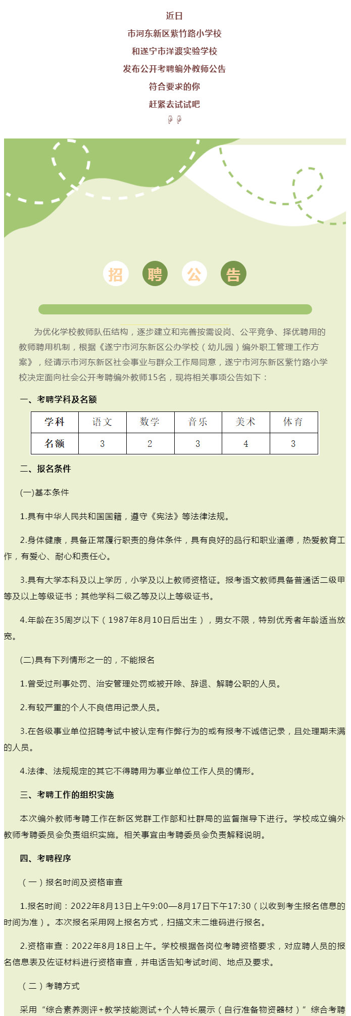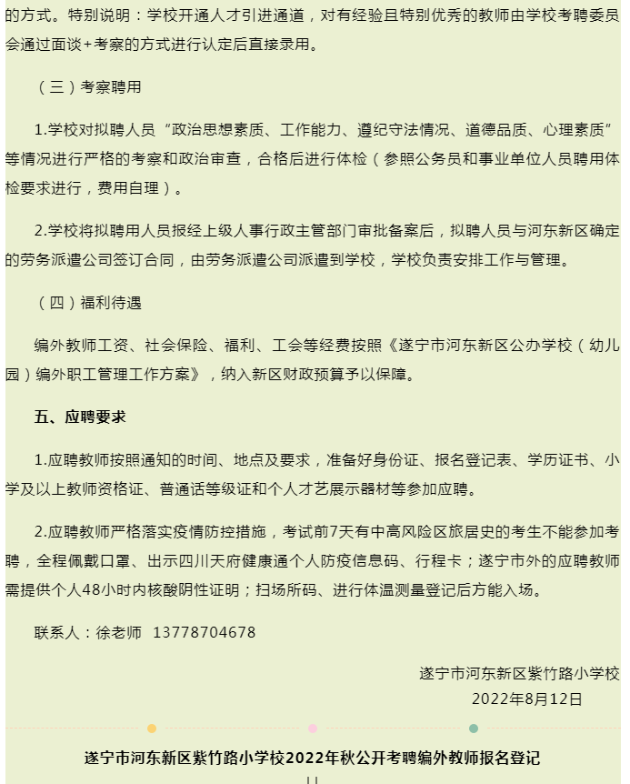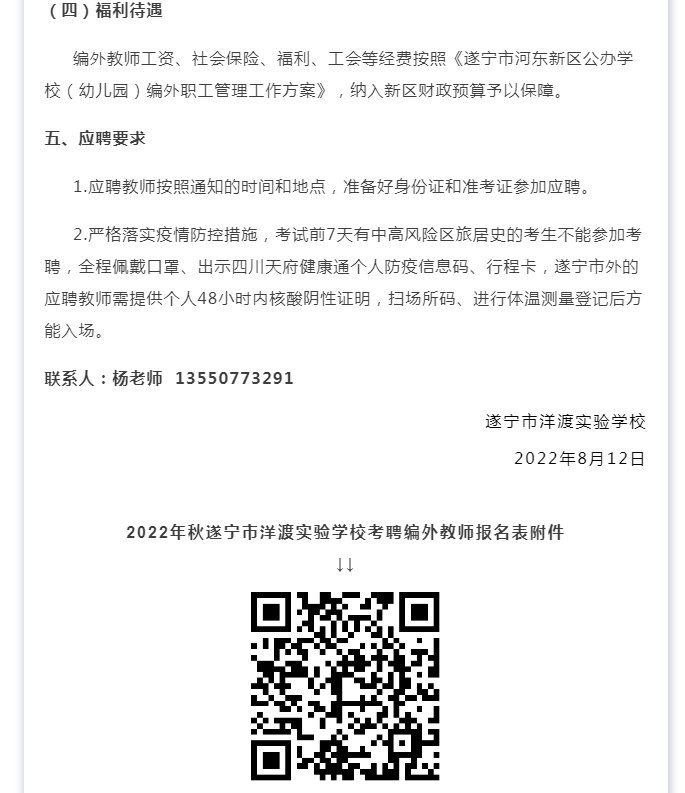 遂宁河东这两所学校公开考聘编外教师
