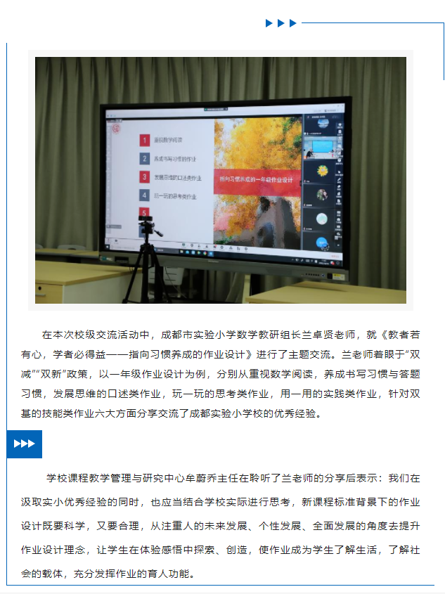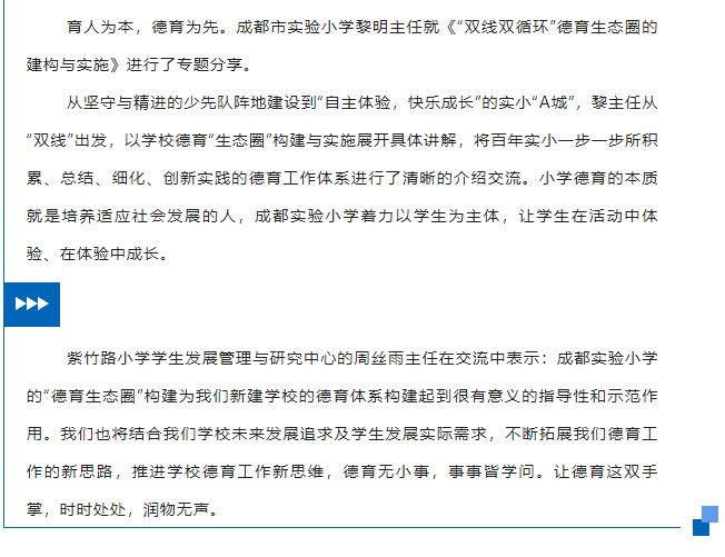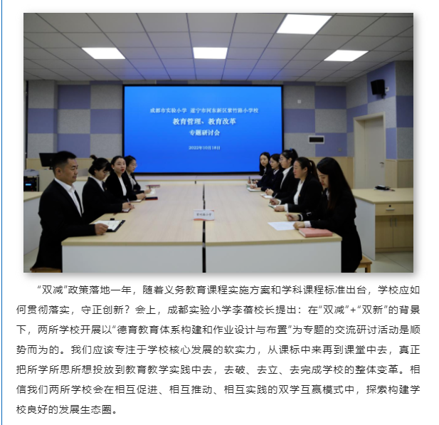 成都市实验小学校与遂宁市河东新区紫竹路小学校开展“教育管理与改革”专题研讨会