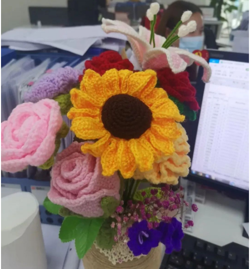 居民带上一束手工花