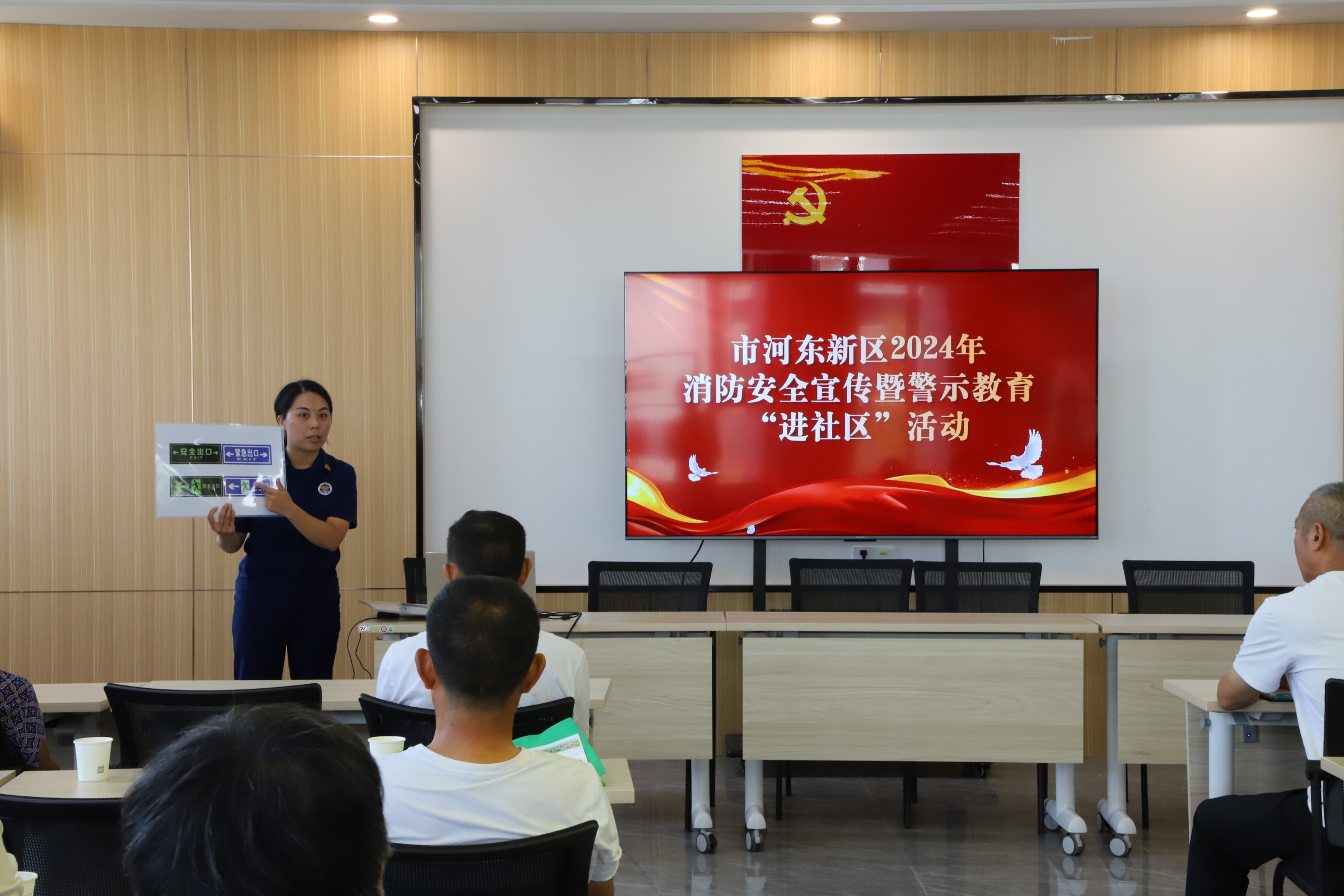 为贯彻执行省政府办公厅印发的《关于全面落实安全责任抓好当前安全工作的紧急通知》要求,推动安全宣传“五进”工作,进一步加强消防安全宣传,近日,市河东新区应急分局、消防大队、杨渡街道、任家渡社区联动开展消防安全宣传和警示教育活动,社区网格员、物业、各小区居民群众代表等共计40余人参加培训。活动首先组织观看了住宅小区火灾、电动车火灾警示教育片及火场逃生案例,讲解了家庭消防安全常识,传授了初起火灾扑救技能,有效提升居民群众消防安全意识,预防家庭火灾发生。
