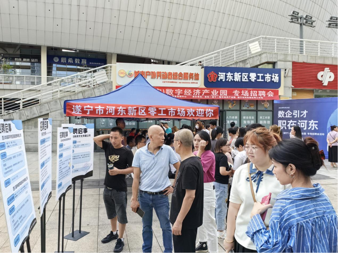 9月20日,“数企引才,职在河东”专场招聘会活动在遂宁市河东新区零工市场 (市体育中心)成功举行。活动由新区社会事务保障中心主办,河东新区零工市场、京东(遂宁)数字经济产业园承办。