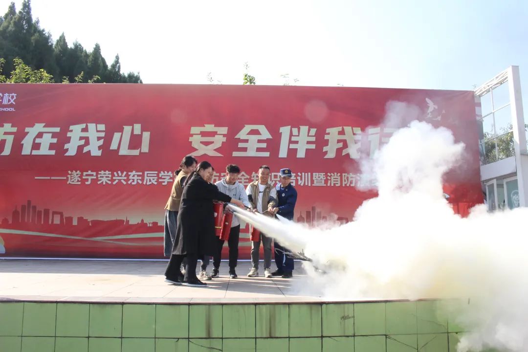 在遂宁荣兴东辰学校小学部,大队宣传员以典型火灾案例为切入点,结合学校实际情况,详细讲解了火灾预防对策、校园安全隐患排查、日常消防安全防范措施及突发状况下学生安全疏散等内容,现场示范灭火器的正确使用方法及操作技巧,教职工通过实际操作灭火演练,提高了师生的防火安全意识和自防自救能力。