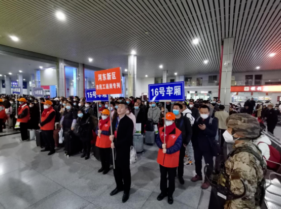 日前,市河东新区56名前往广州务工的农民工搭乘首趟D1812次返岗专列,从遂宁火车站出发驶往广州南车站,开启新一年的返岗就业之路。