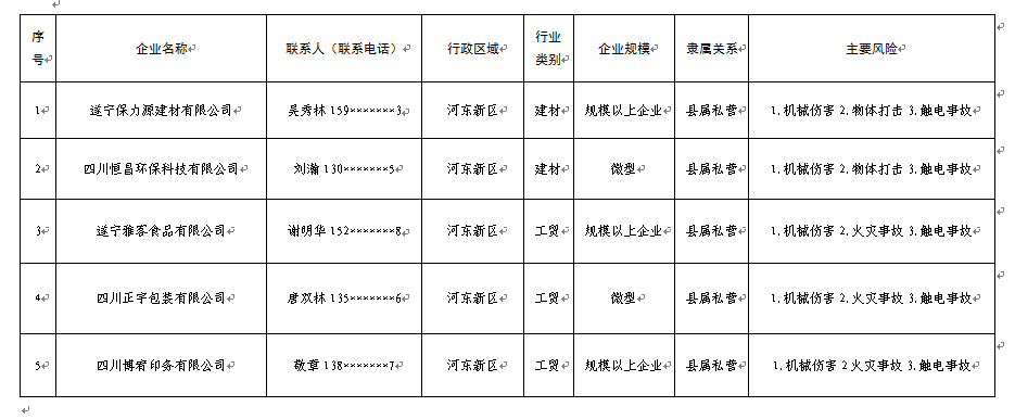 安全生产“创安2021”监管执法专项行动一般企业名录库