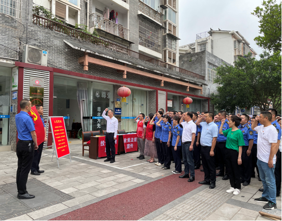 河东新区综合行政执法局党支部主动对接灵泉街道办事处香山路社区,开展“学史力行 服务群众 共建美丽河东”志愿服务活动,党支部书记唐毅同志带领广大党员干部重温入党誓词,感悟初心使命,增强前行力量。
