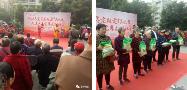 10月25日当天,市河东新区慈音街道办事处与新区社群局在东汇广场进行了一场以“弘扬养老孝老敬老传统,共建共享老年友好社会”为主题的文艺演出活动,用舞蹈和小品等文艺节目弘扬了中华民族尊老、敬老、爱老、助老的传统美德。同时辖区企业也主动参与到活动中来,向老年群众免费赠送大米等生活物资,用实际行动展示了企业的社会责任。