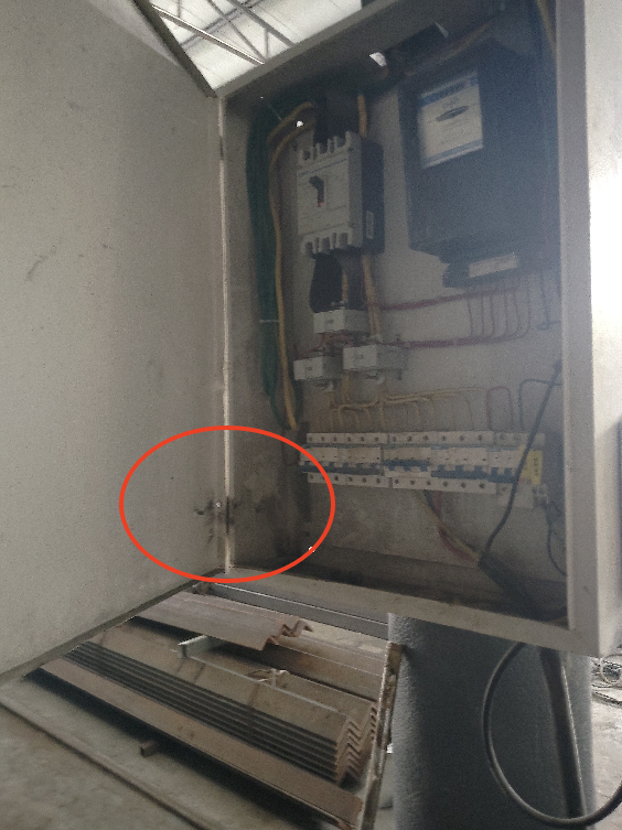 隐患一:配电柜箱体与门之间无防触电跨接线。