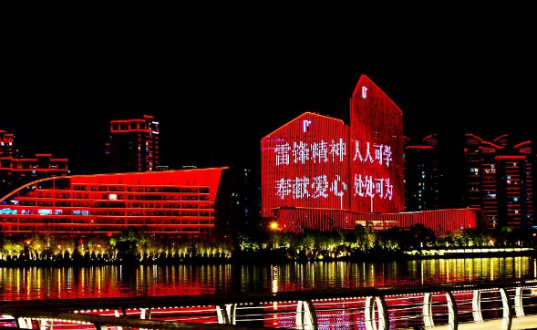 今年是毛泽东等老一辈革命家为雷锋同志题词60周年,3月5日是学雷锋纪念日。3月4日晚,在市河东新区的高层建筑上显示出“让雷锋精神在新时代绽放更加璀璨的光芒”“雷锋精神 人人可学 奉献爱心 处处可为 ”字样的灯光秀扮靓城市夜空,营造出学雷锋、做好事、扬正气的良好氛围。