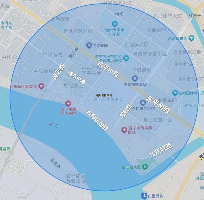 (一)范围:以遂宁市体育中心内经纬度点(经度105°36′1.800″,纬度30°31′12.750″)为中心,水平半径1000米,垂直真高300米及以下。