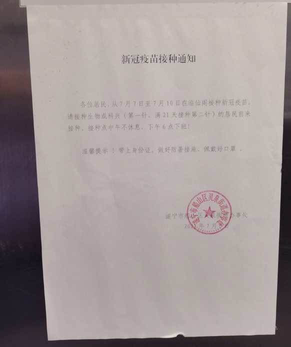 为更好地服务居民,确保疫苗应种尽种,街道、社区工作人员通过张贴疫苗接种通知单、电话核实接种情况、喇叭循环播放、走村入户等形式,积极组织开展新冠疫苗接种工作,并重点对年老体弱,腿脚不方便的居民进行“一站式”服务。