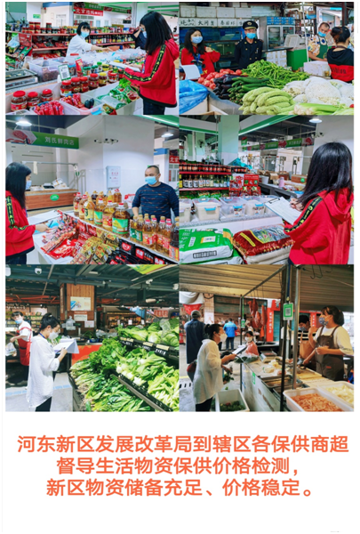 面对突发疫情,市河东新区发展改革局快速响应,以“疫”为令,以“防”为责,全力做好群众“菜篮子”“米袋子”等基本生活物资供应保障,确保群众生活必需品、防疫物资等商品供应充足价格稳定。