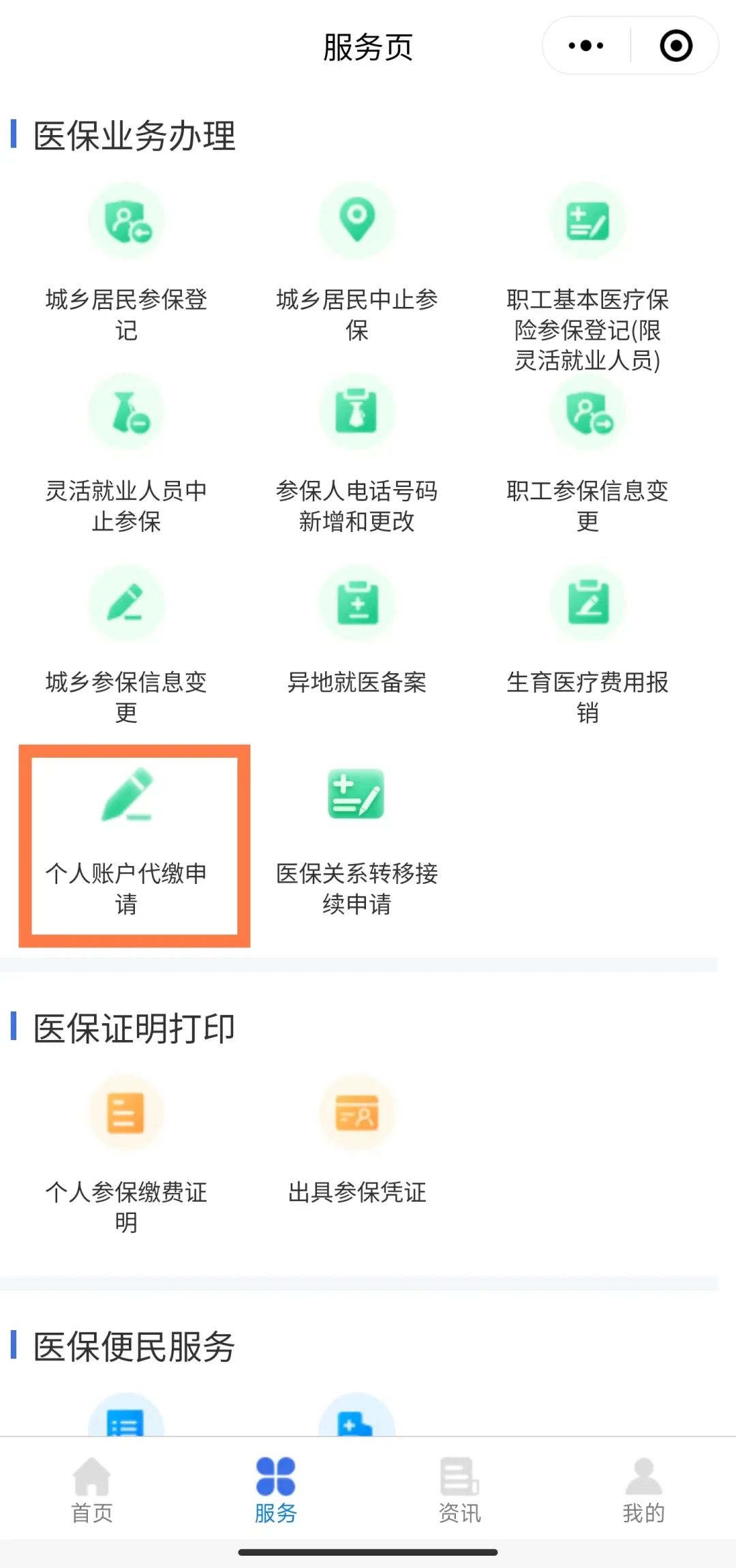 5. 选择个人账户代缴申请,进入个人账户代缴信息填写界面。