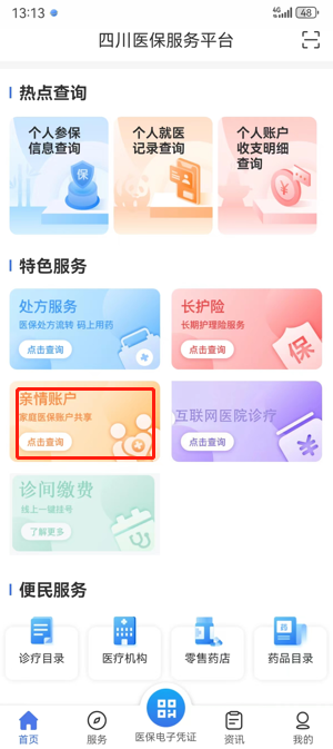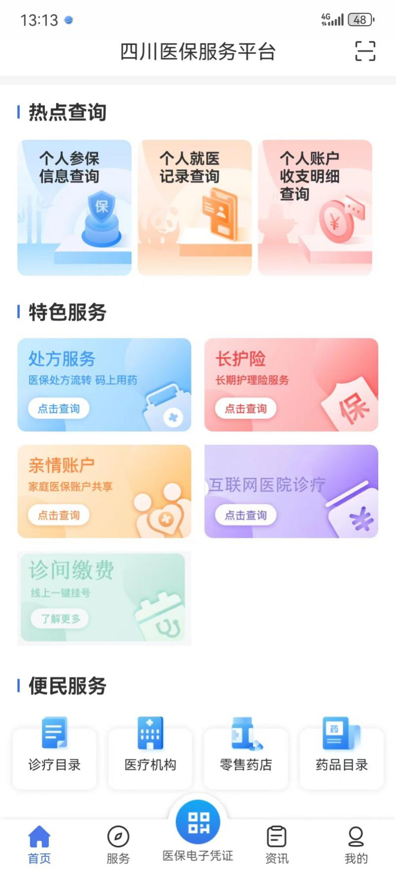 1. 参保人登录医保公共服务平台四川医保APP、微信小程序、支付宝小程序等,进入服务平台。