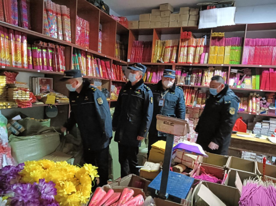 截至目前,共计排查超市、小卖部等销售点260余处,发放宣传资料850余份,劝离焚烧祭祀5起,劝止燃放烟花爆竹行为3起,依法查处违规售卖烟花爆竹行为2起,暂扣烟花爆竹23件。
