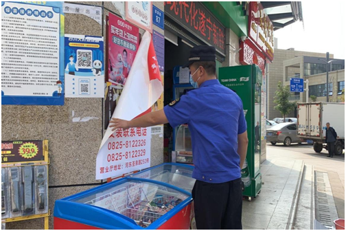 二、强化巡查,整治清理。针对 “牛皮癣”小广告现状,组织执法人员强化“牛皮癣”巡查,以主次干道为主,向背街小巷和老旧小区内延伸,扩宽巡查面,对公交站台、广场、商铺、电线杆、配电箱等进行重点整治,一旦发现“目标”,立即予以清除。