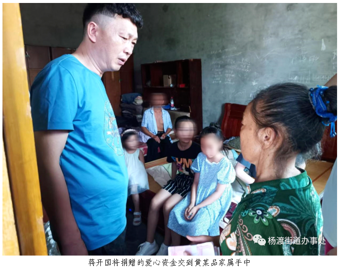 帮助黄某品一家已经不是蒋开国的第一次善举,长期以来,他曾捐资帮助姜家巷社区修路,也曾先后帮助姜家巷社区困难村民(居民)300余人,累计捐赠爱心资金已超过100万元。蒋开国也先后获得“遂宁市优秀农民工”“最美河东人”等荣誉称号。